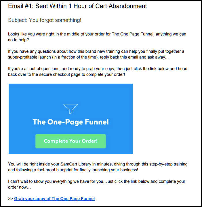 Email #1: Sent within one hour of cart abandonment